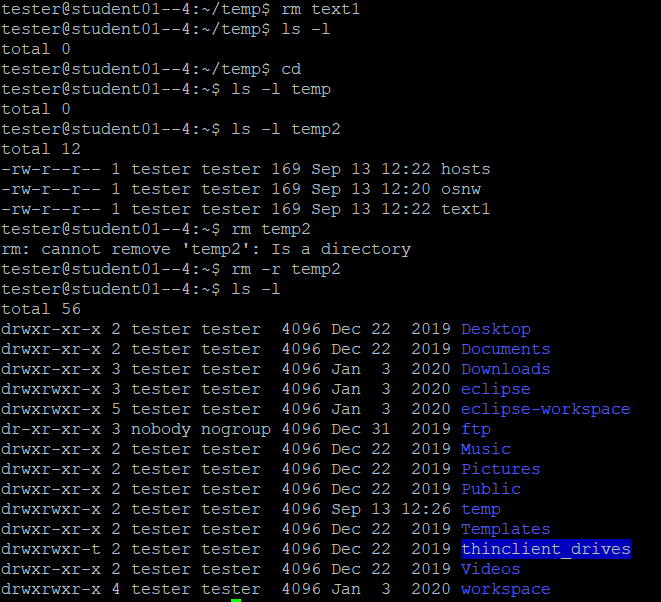 (여기서 파일을 삭제하는 명령어지만 옵션 -l을 덧붙인다면, 디렉터리를 삭제할 수 있다. 단 이때 하위 파일을 가지고 있지 않아야 한다.)