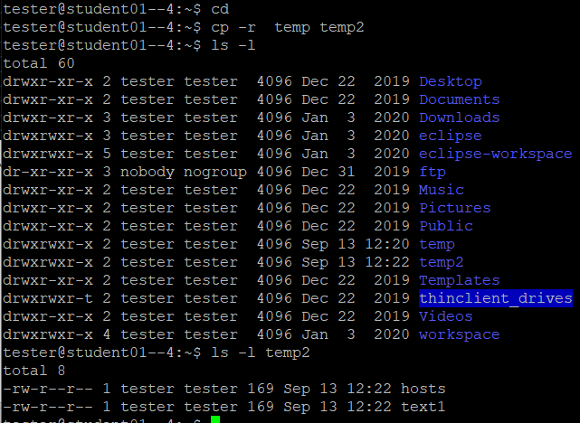 ex) cp 복사할파일명 복사할장소 (복사할 장소에 똑같은 이름으로 복사된다.)