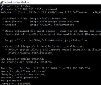 이때 간단히 passwd의 명령어를 입력하면, 새로운 패스워드를 입력하라고 뜨며, 이를 활용하여 자신의 비밀번호로 바꾸면 됩니다.
