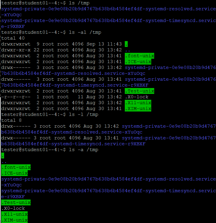 5. 파일과 디렉터리 이름이 점(. )으로 시작되면 숨김 파일로 간주한다.