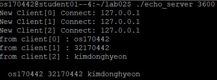 - accept을 통해서 서버에 들어오려는 클라이언트를 하나의 배열에 하나씩 저장합니다. 여기서 배열은 3개로 지정합니다.