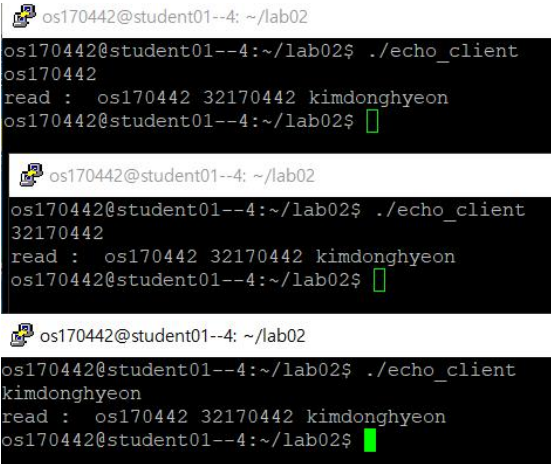 - 이를 3개의 클라이언트를 돌며 반복하여 msg에 저장하여 순회 완료 후 서버에 출력하여 확인한다.