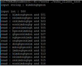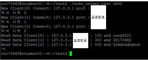 * 각 클라이언트는 자식 프로세스에서 받은 내역을 계속 출력한다.