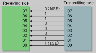 직렬 통신은 기본적을 1바이트 데이터를 6개의 비트로 쪼개 한번에 1BIT씩 통신 ㅅ너로를 통해 전송을 하는 방식이다. 이때 8개의 비트 범위를 식별하기 위해서 Start, End Bit를 추가해 총 10Bit의 데이터를 송수신하게 된다. (물론 이런, Start, End Bit를 활용하지 않고 패리티 비트를 활용해 데이터의 범위를 식별하는 방식도 있다.)