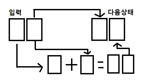 이게 무엇을 의미할 까요? 네 바로 다음 상태의 1의 자리를 결정하기 위해서 입력의 1의 자릿수와 10의 자릿수를 더하는 작업을 진행하게 되죠.