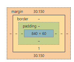 저희가 지정했던 border-bottom : 1px 이 border의 아랫부분에 1 표시가 있는 게 보이죠? 바로 저희가 지정했던 정보들을 그림으로 표현하여 보기 편하게 합니다. 또한 해당 부분을 클릭하면 어느 부위의 값이 어느 정도인지 바로 확인이 가능합니다. 그렇다면 저희가 그은 선이 border이면 해당 글자와의 사이 간격은 바로 padding값을 주면 늘릴 수 있습니다.