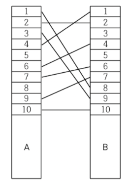 예를 들어, < 그림 1 >과 같이 전깃줄이 연결되어 있는 경우 A의 1번 위치와 B의 8번 위치를 잇는 전깃줄, A의 3번 위치와 B의 9번 위치를 잇는 전깃줄, A의 4번 위치와 B의 1번 위치를 잇는 전깃줄을 없애면 남아있는 모든 전깃줄이 서로 교차하지 않게 된다.