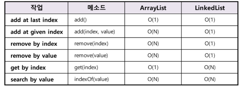 뭐 대체로 LinkedList를 사용하고 특별히 값이나 인덱스를 통 해거 탐색을 원한다면 ArrayList를 사용해야 한다.